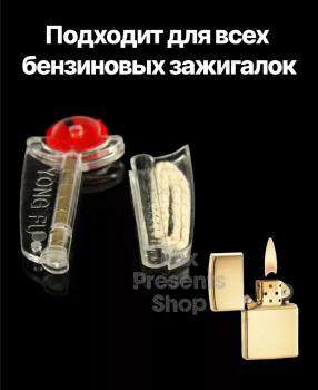 Набор для бензиновой зажигалки кремний + фитиль (ремкомплект) в прозрачном дозаторе