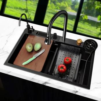 Кухонная стальная раковина бренда MERFY это идеальное решение для вашей кухни. Стильный дизайн, компактная и многофункциональная мойка синего оттенка сразу притягивает взгляды и придает вашей кухне утонченность и элегантность.Независимо от вашего стиля,наша черная раковина из нержавейки впишется с легкостью,создавая неповторимую обстановку. Нержавеющая сталь SUS304 является гарантией качества, сохраняя термостойкость и прочность в условиях низких и высоких температур, а так же коррозионную стойкость.Большая глубина чаши минимизирует возможность брызг,что делает использование еще более комфортным и удобным, обеспечивая достаточно места для мытья посуды и овощей,а нанопокрытие в свою очередь устойчиво к износу или царапинам.Сливное отверстие с сеткой поможет с удалением пищи,а слив в свою очередь экономит пространство под раковиной, куда можно поместить мусорное ведро или другие предметы. Наша максимальная комплектация создаст прекрасного помощника, используя стаканомойку,гибкий смеситель с тремя режимами работы, длиной 60см, а так же режим водопада для легкого мытья овощей или фруктов при помощи разделочной дощечки, которая идет в комплекте.Ее легко установить внутри, как и другие тары. Внутренняя поверхность является антибактериальной, что создает защиту не только для вас, но и для всей семьи.