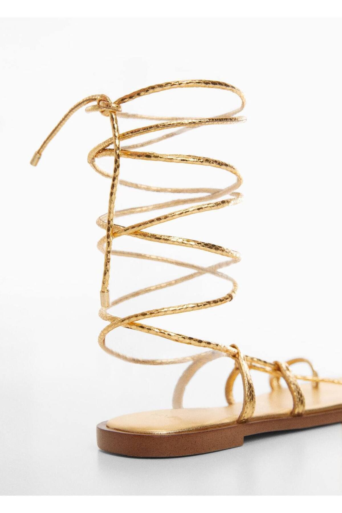 Mango золотистыe женскиe сандалии