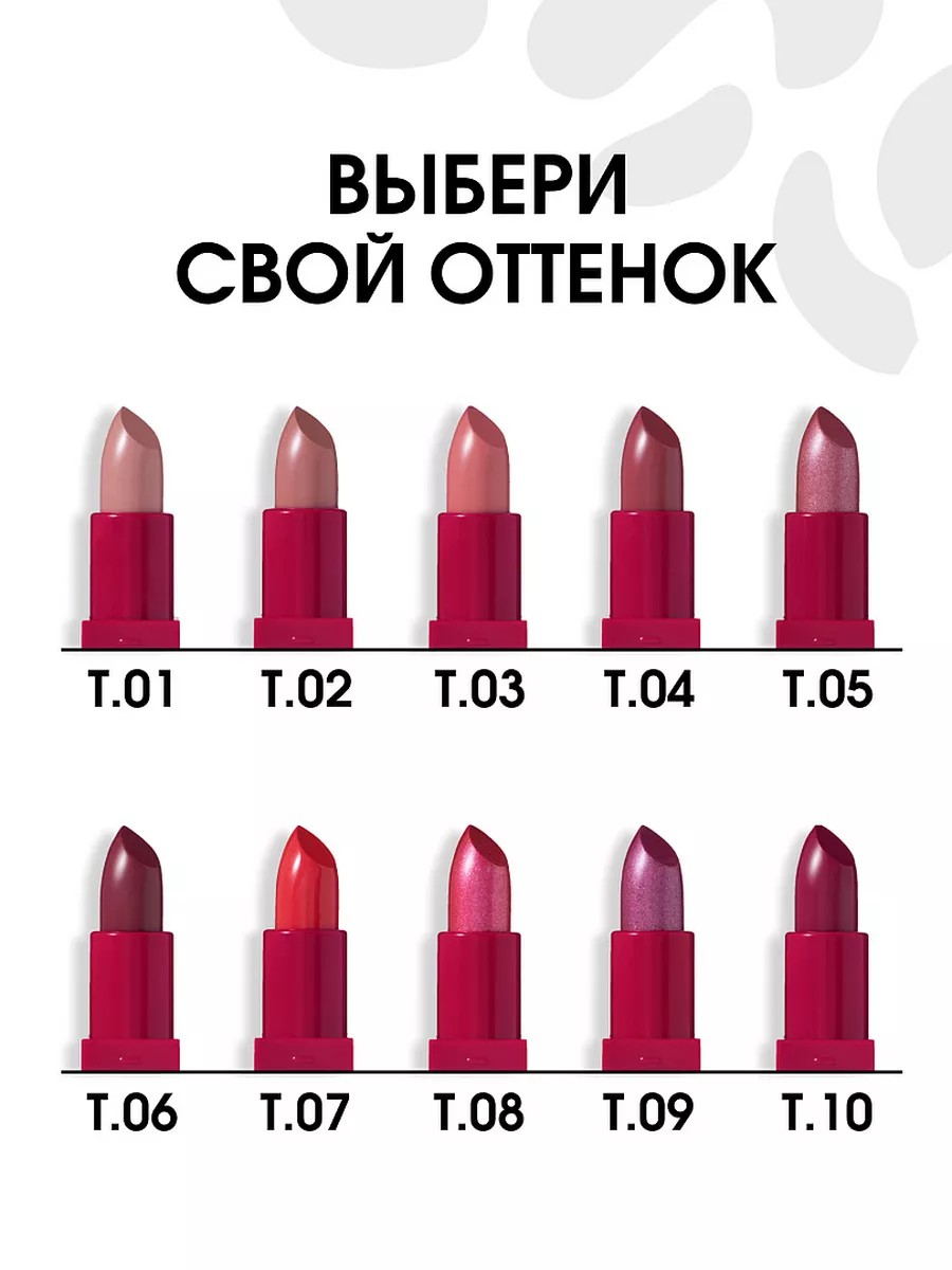 Характеристики Цвет: №08 SWEET Объем: 4gr Описание Помада с устойчивой текстурой My Lip Symbol комфортно ощущается на губах, равномерно наносится и придает насыщенный цвет благодаря высокой пигментированности. Касторовое масло в составе питает, смягчает и разглаживает кожу губ. Текстура имеет приятный аромат сочного винограда. Роскошный футляр алого цвета с матовым покрытием soft-touch и золотым леттерингом станет отражением вашего характера и статуса. Способ применения Для плотного покрытия и насыщенного оттенка наносите помаду из стика. Чтобы покрытие было легким и полупрозрачным, аккуратно наносите подушечками пальцев похлопывающими движениями.